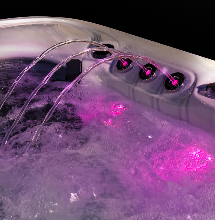 Spectra LED and underwater lighting is an integral part of the whole Earth Spas experience. Designed to enhance the look of each Earth Spas hot tub in the range, the underwater lights flood the water with a rich array of colours, either in rotation or one that suits the mood. Simply choose the setting and strength of colour that suits the occasion, then relax.