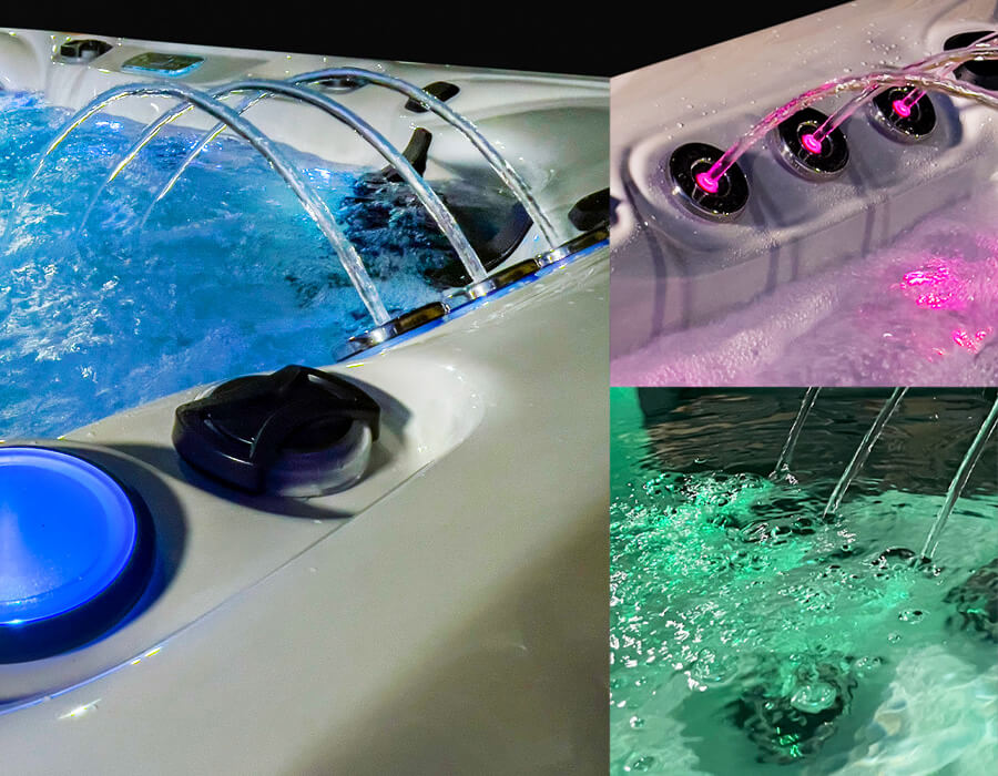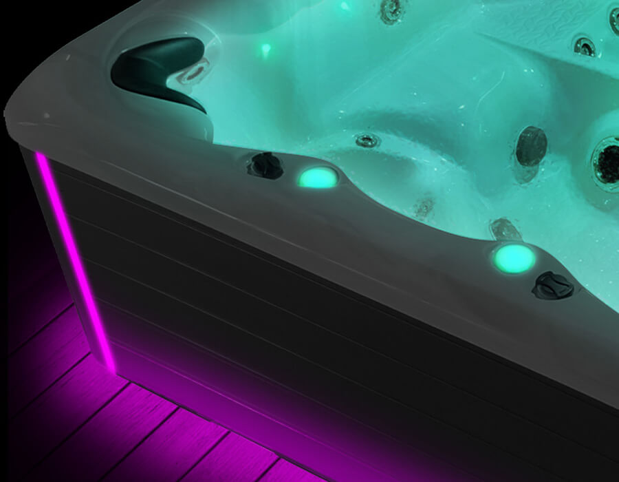 Cabinet lighting gives any Earth Spas model an aura all of its own. With colours that span the whole spectrum you can control the mood of the moment. Find out about our Cabinet Lighting Pack, and your hot tub will look as great on the outside, as you’ll feel on the inside.