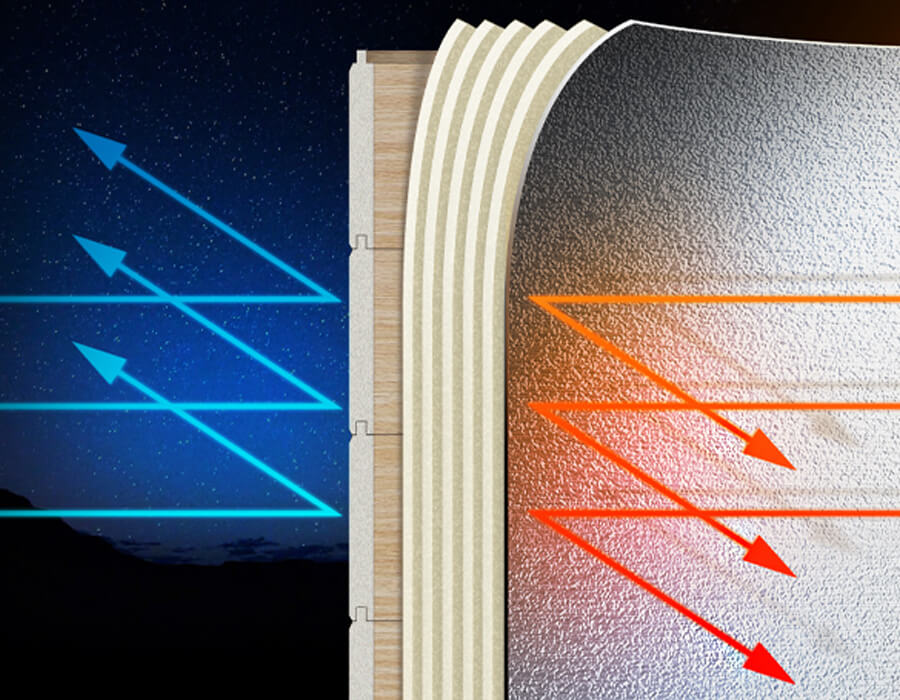 To optimise energy efficiency, on the inside cabinet, several layers of foam are covered by a layer of foil which throws back the heat generated from the pumps and heaters. This reuses the same energy to heat the cabinet and water in the tub repeatedly. Simultaneously, cold air on the outside, trying to penetrate the mechanics of the Spa, are reflected away.