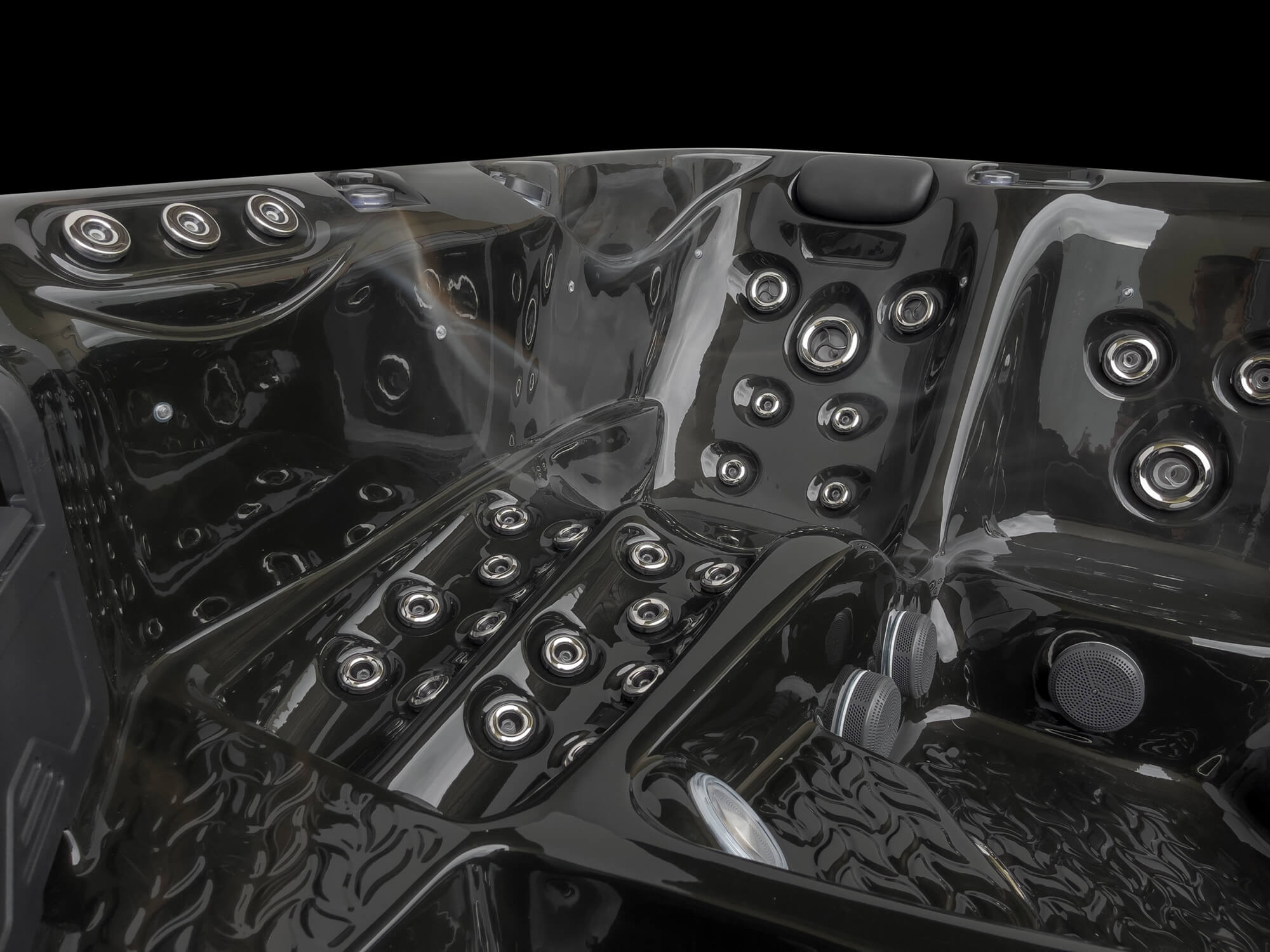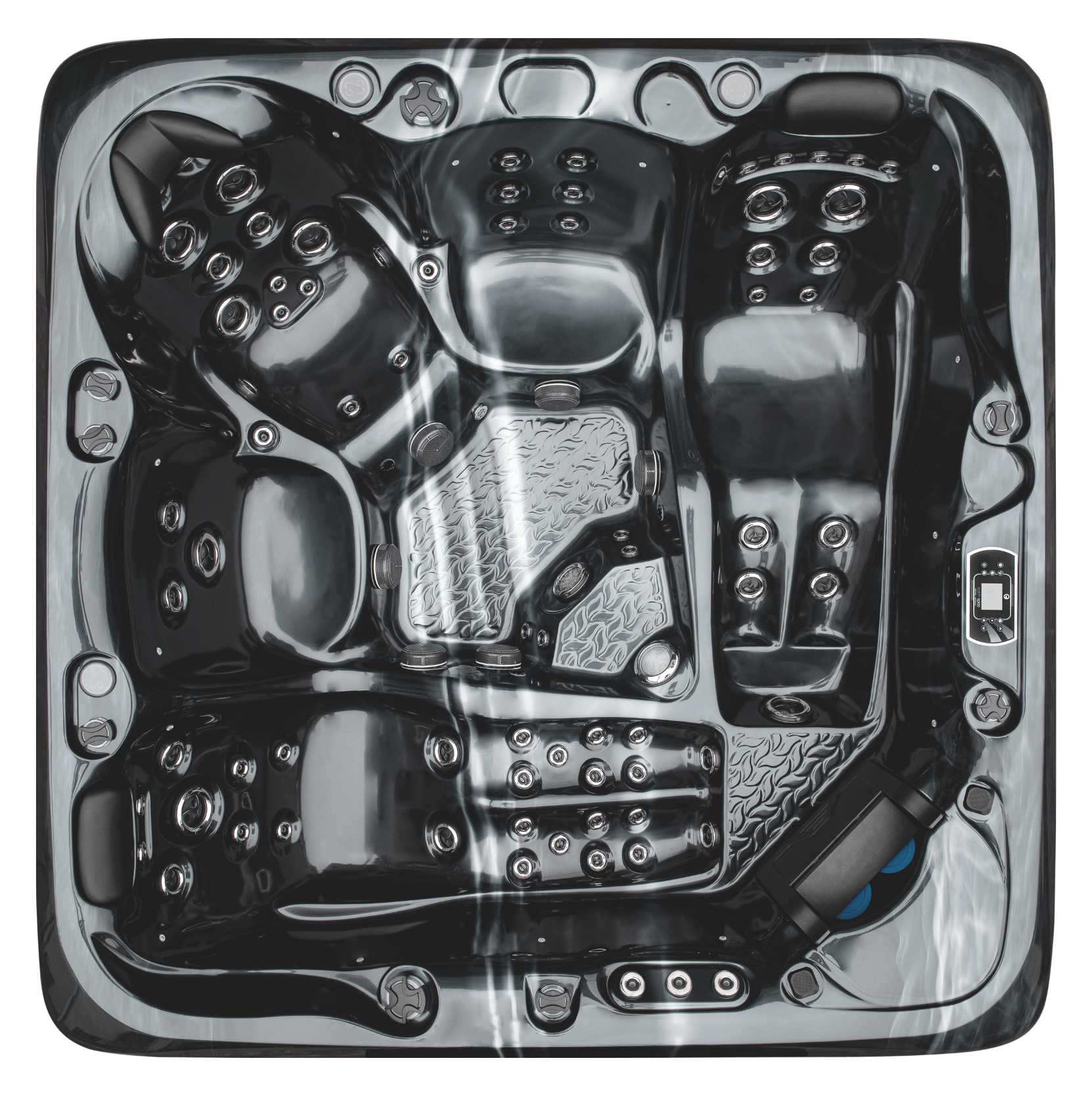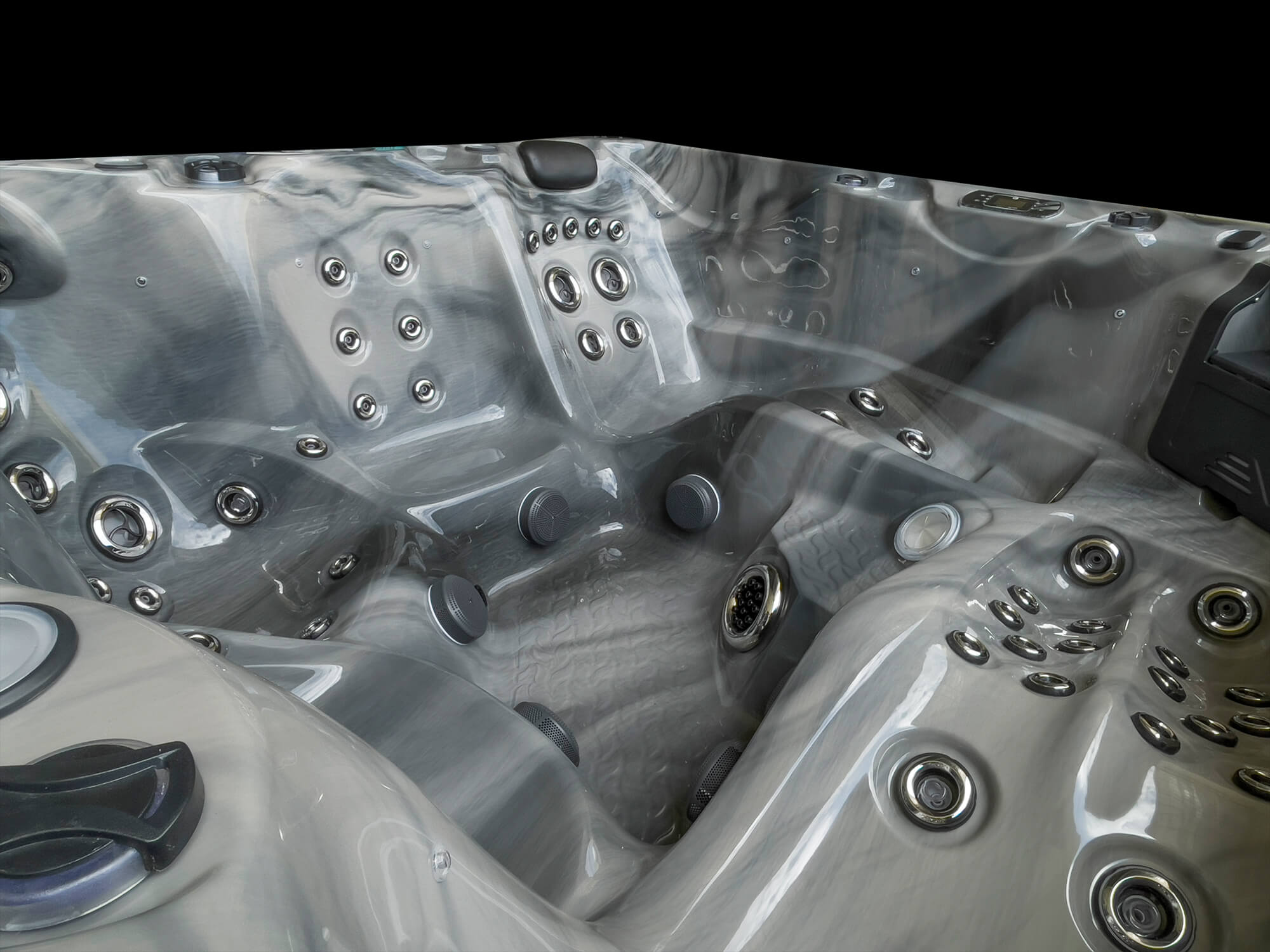 With two equal size large multi-jet loungers, a deep bucket therapy seat, targeted all over body massage, rigorous foot massage, stunningly bright multi-colour LED lighting and a double-step tiered entry just to name a few; showmanship has never felt so good.