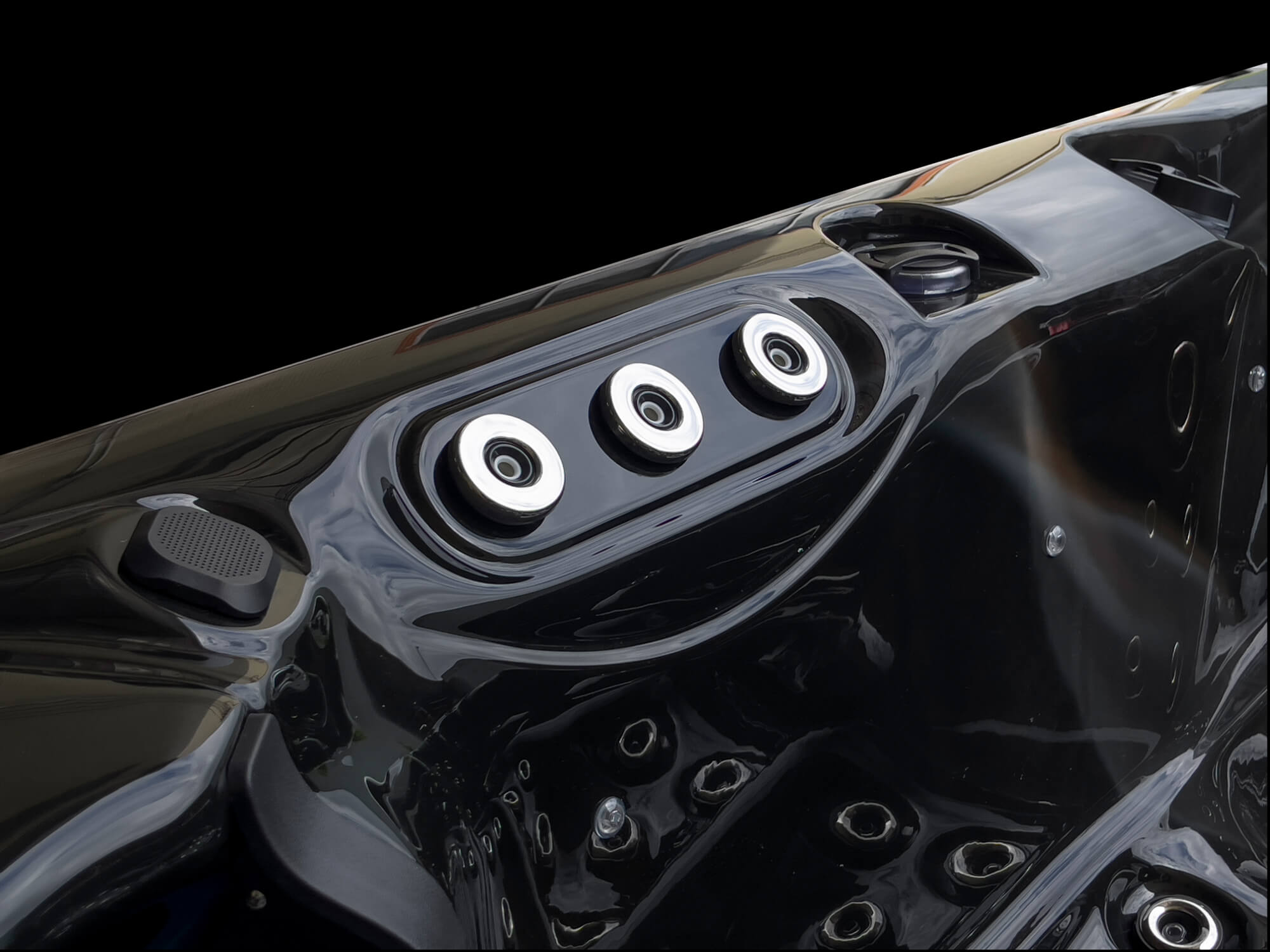 With it’s larger dimension, sleekness and backlit outer rim this touch panel enhances the design of your spa in an instant.
