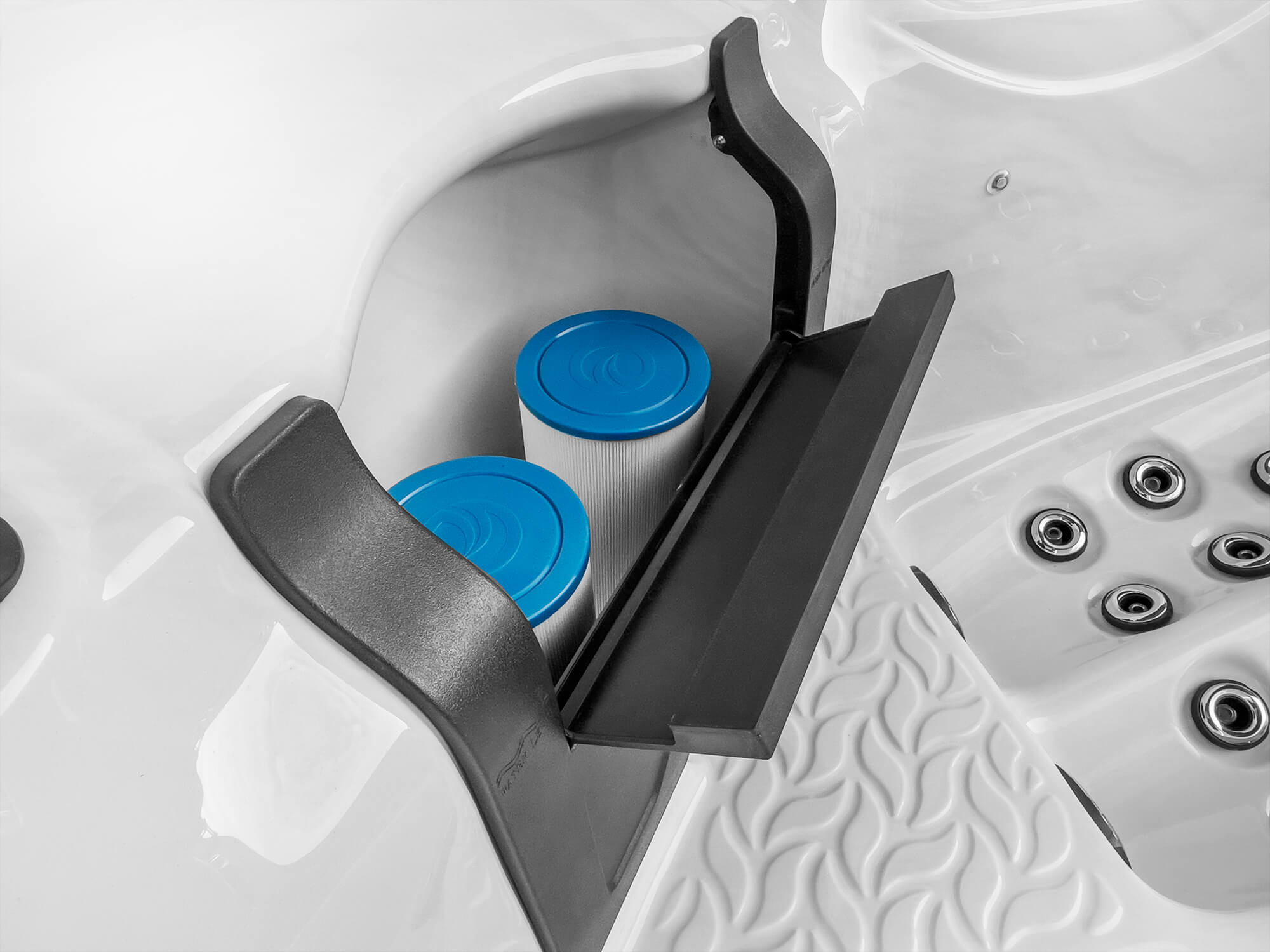 All Earth Spas have been designed with a completely flat step on the inside of the spa. Combined with added tread, this feature allows you a much easier and safer passage when entering and exiting your spa.