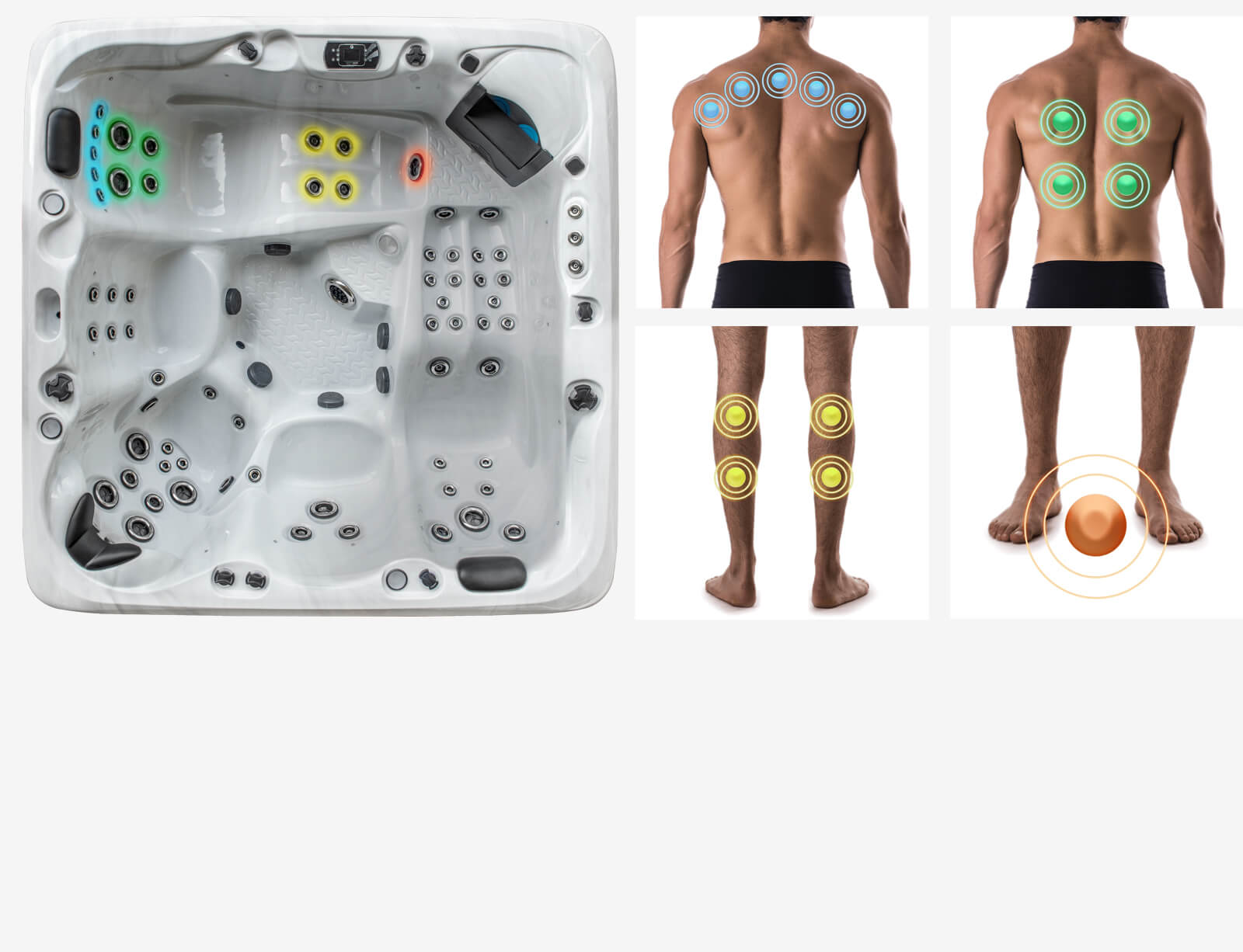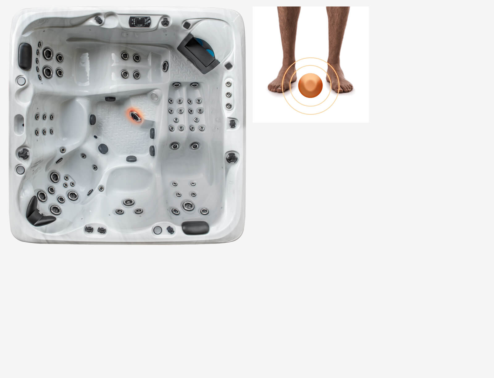 Our specially designed foot blaster jets produce an acupressure-like feeling to the soles of your feet and give your entire foot a well-deserved deep tissue massage.