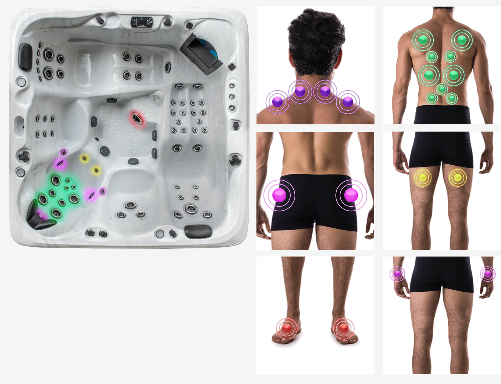 Relax as the jets create the optimal blood circulation to soothe any aches and pains in the upper and lower back.