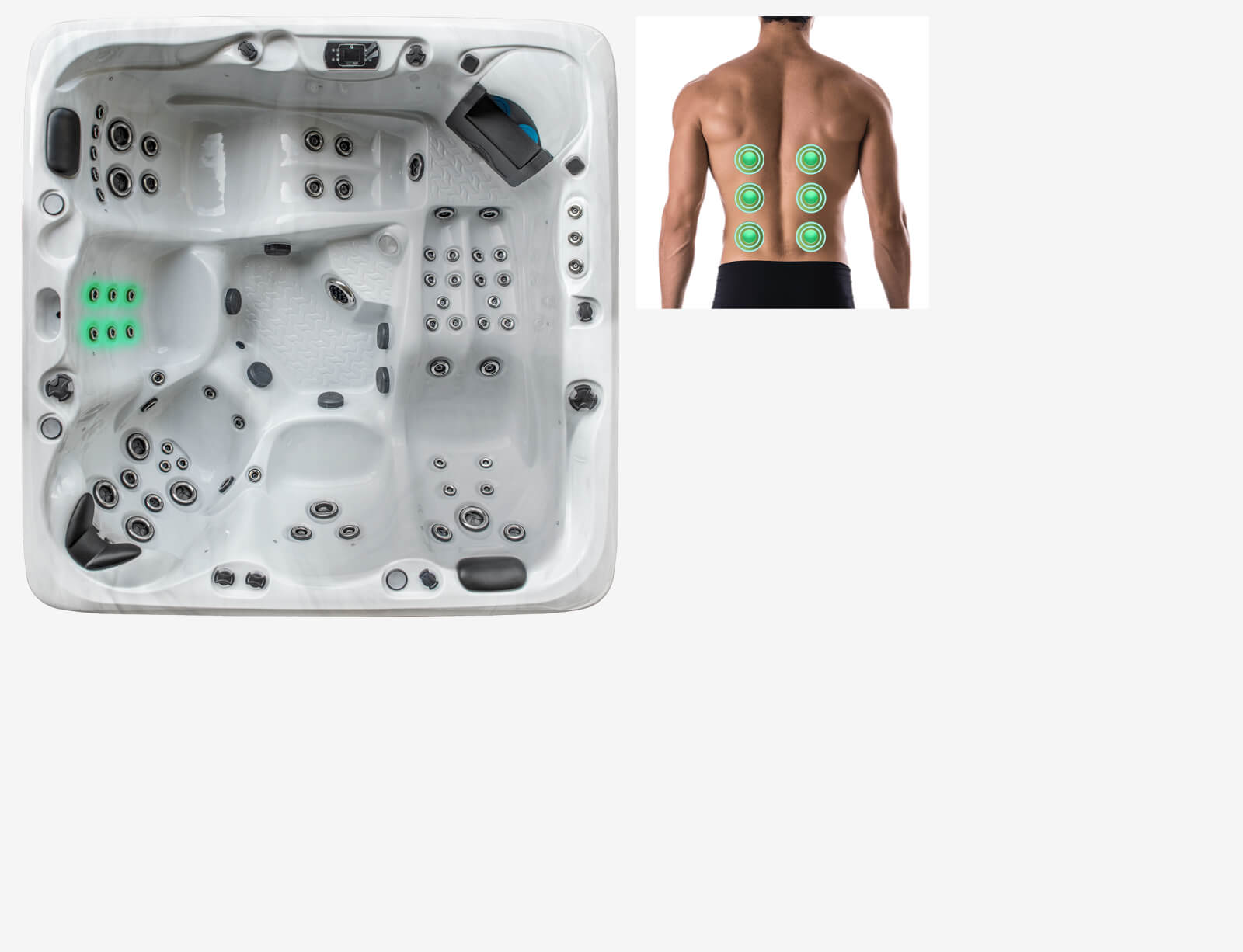 Positioned in order to work their magic all over the body, aches and pains simply melt away with Earth Spas invigorating hydrotherapy jets.