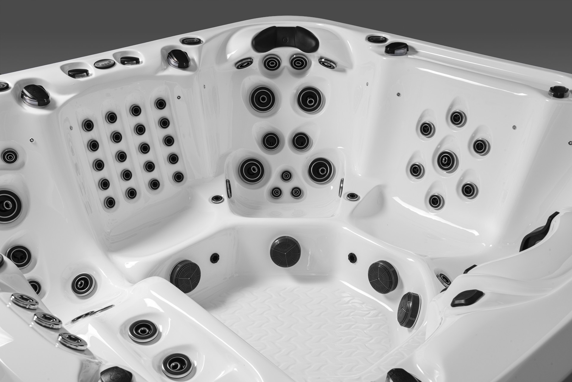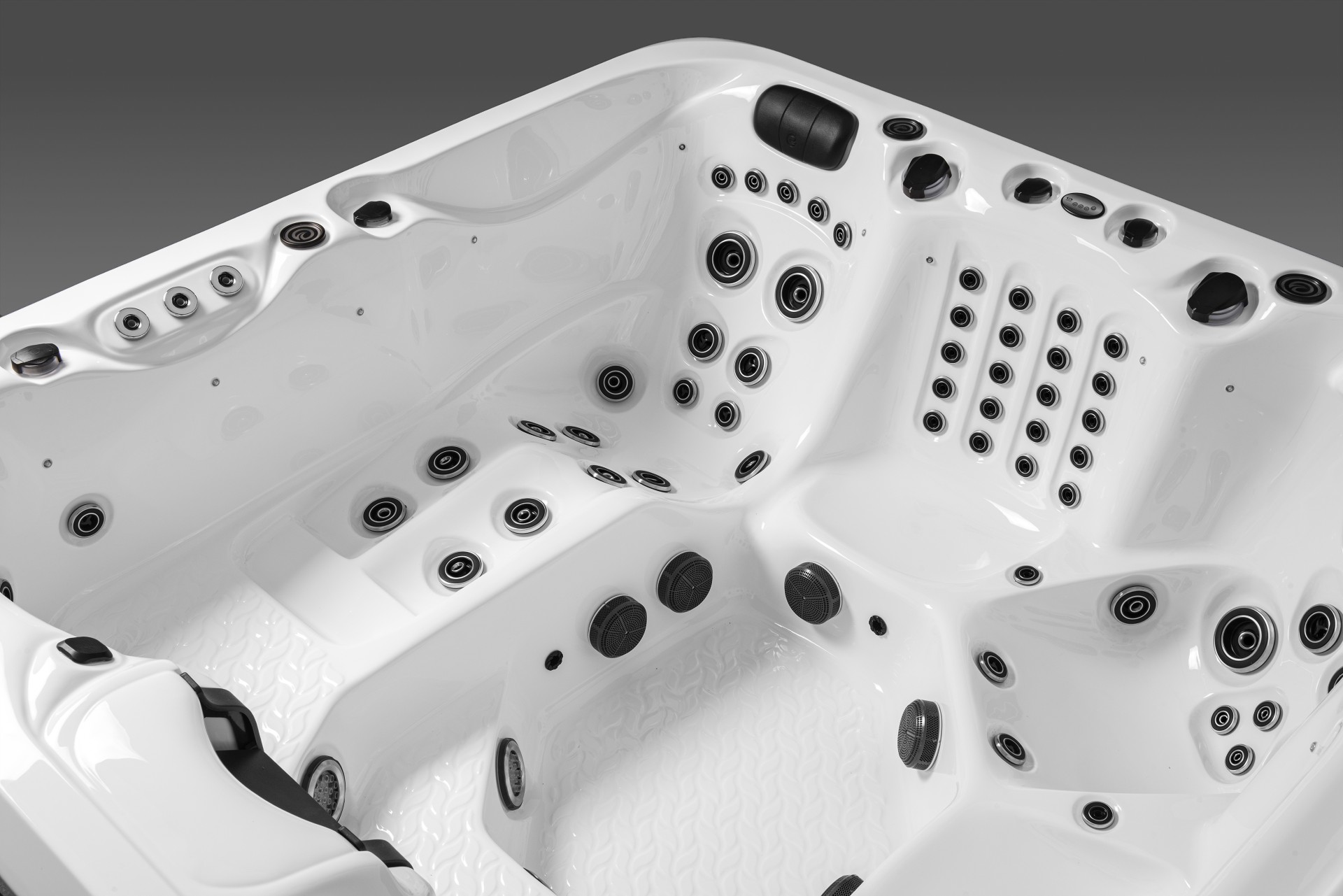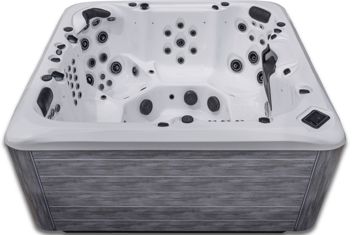 The Kern River is a 91″x 91″, 90 jet, 3-pump powerhouse. This model boasts no less than 4 foot blasters and 4 well positioned diverters for precision water therapy where you need it most. In addition, the Kern River is the very first spa in our line up to incorporate touchscreen controls with the added comfort of an auxiliary control conveniently located at the back of the spa.