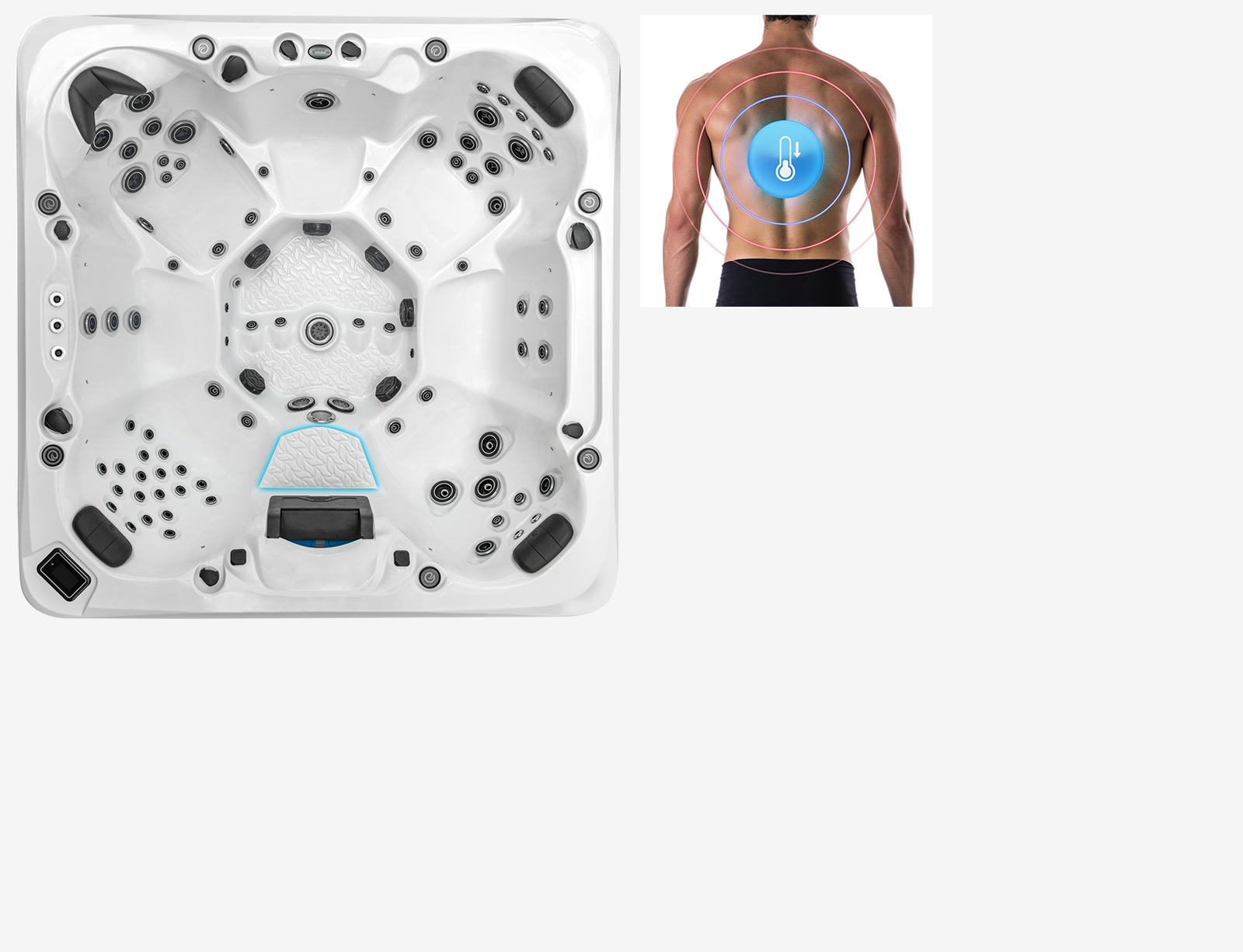 Inspired by Mauna Kea on Hawaii’s Big Island—the tallest mountain on Earth from base to summit—this spa reflects its vastness and volcanic power. Spacious seating and a sculpted footwell with three ThermaVent foot blasters deliver deep, controlled hydrotherapy for total rejuvenation.